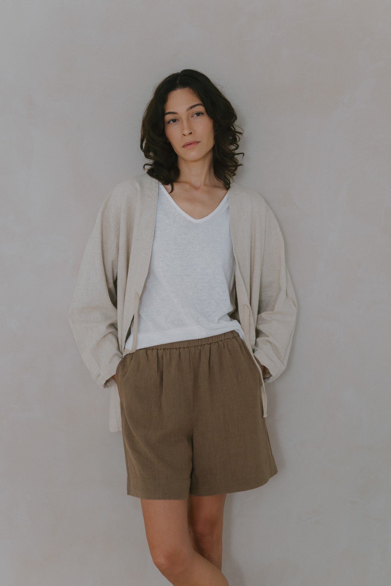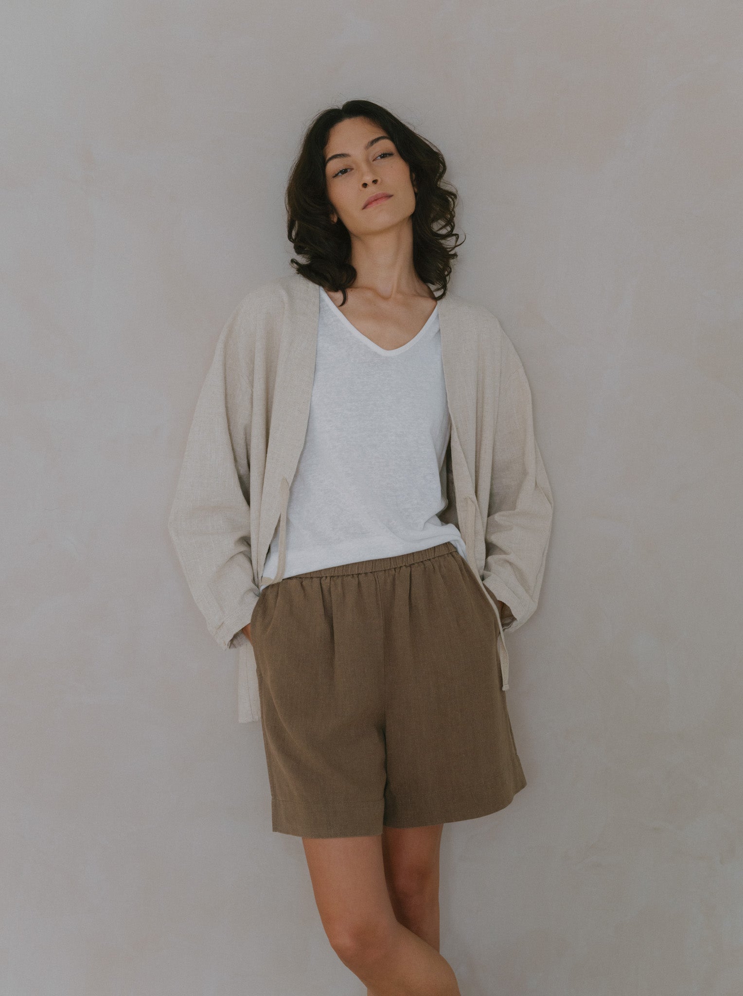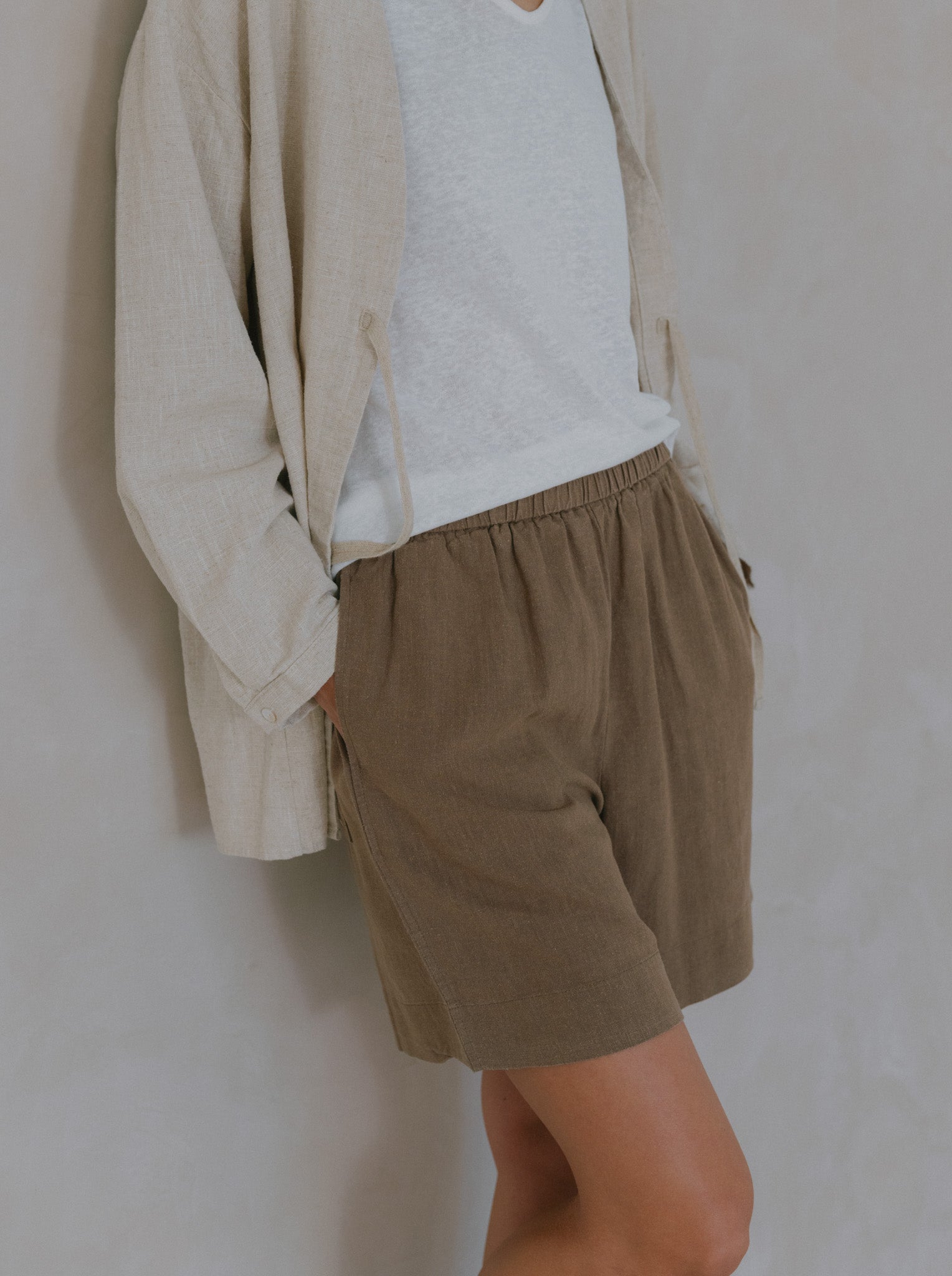 Relax in comfort with our Amelia Linen Shorts, thoughtfully designed with a blend of breathable linen and sustainable Tencel fabric. These shorts offer a relaxed fit, practical side pockets, and an elasticated waist for ultimate ease. Perfectly versatile, they're ideal for leisurely days or casual outings.