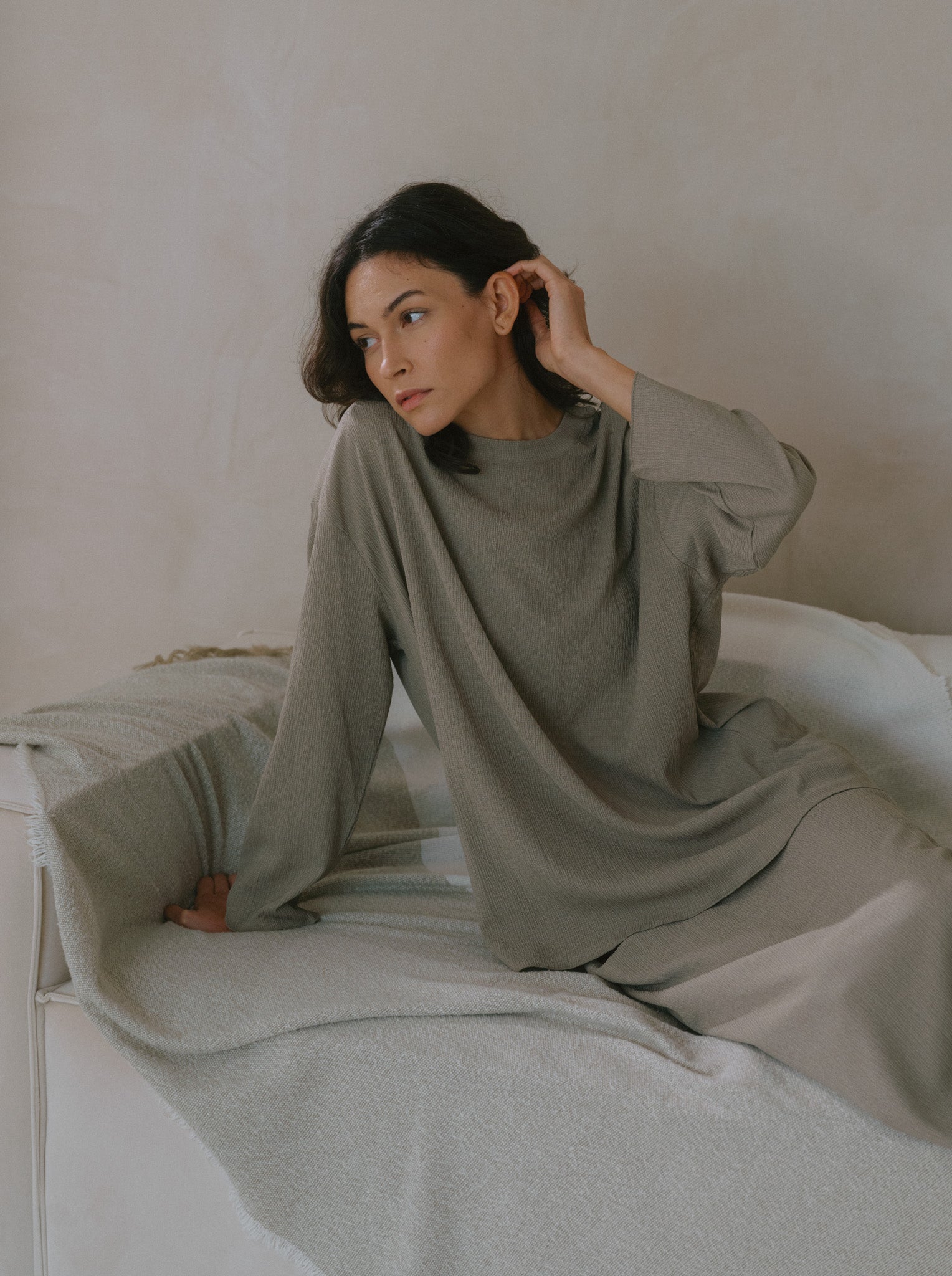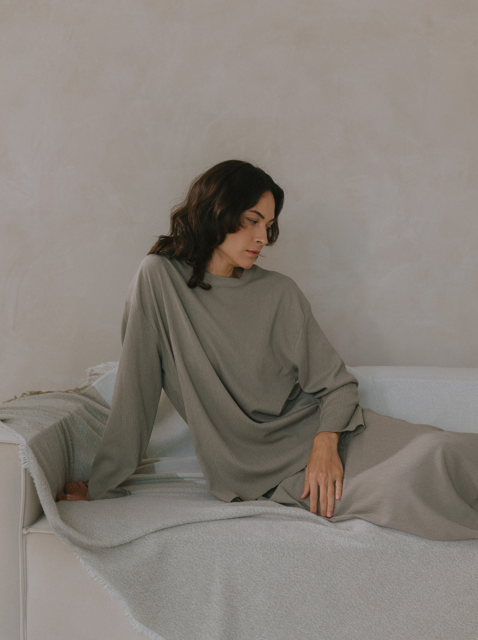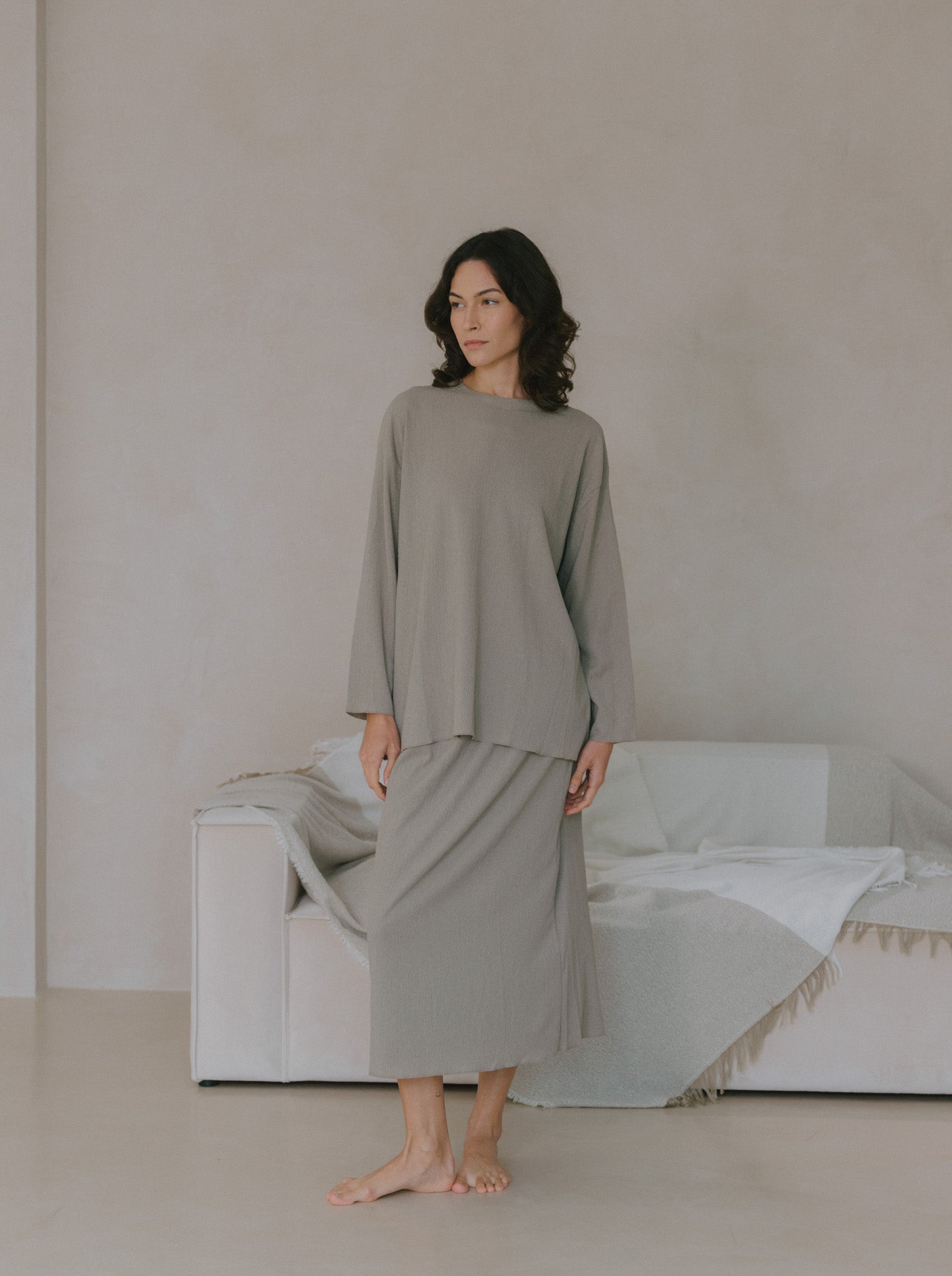 Refined ease meets everyday versatility in the Pleat Elasticated Midi Skirt. Crafted from a soft and lightweight polyester-spandex blend, it features a flowing silhouette with delicate pleats and a comfortable elasticated waistband. Whether styled with a relaxed top or layered with structured pieces, this skirt brings graceful movement and understated sophistication.