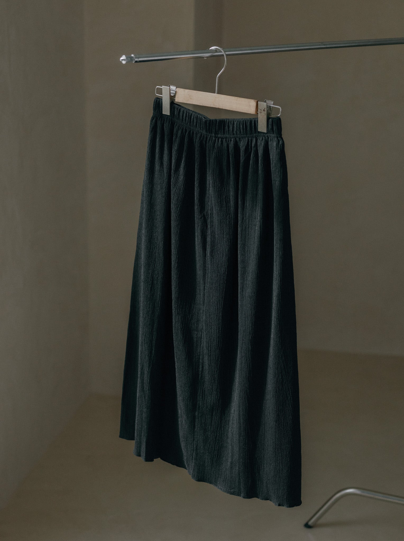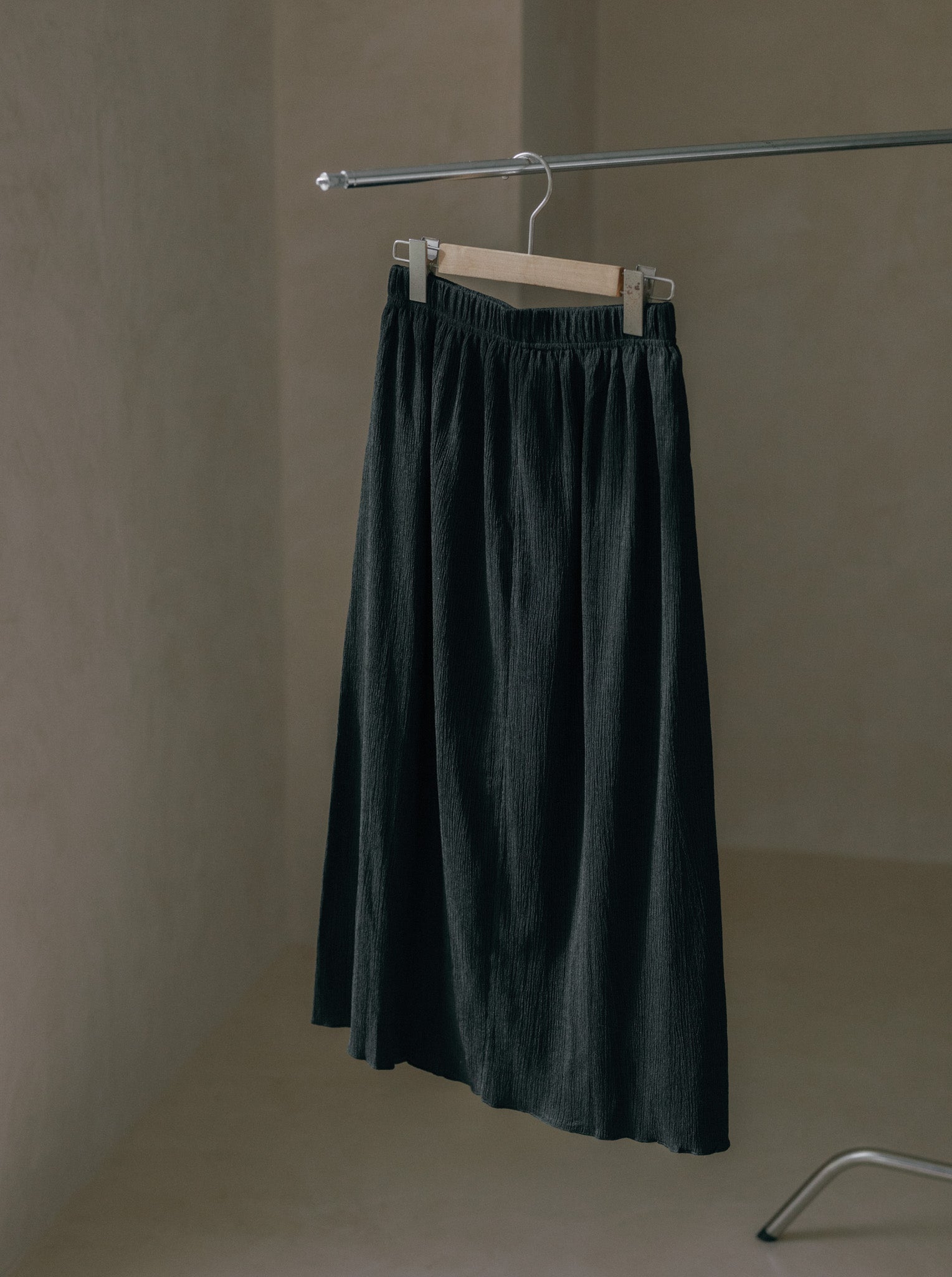 Refined ease meets everyday versatility in the Pleat Elasticated Midi Skirt. Crafted from a soft and lightweight polyester-spandex blend, it features a flowing silhouette with delicate pleats and a comfortable elasticated waistband. Whether styled with a relaxed top or layered with structured pieces, this skirt brings graceful movement and understated sophistication.
