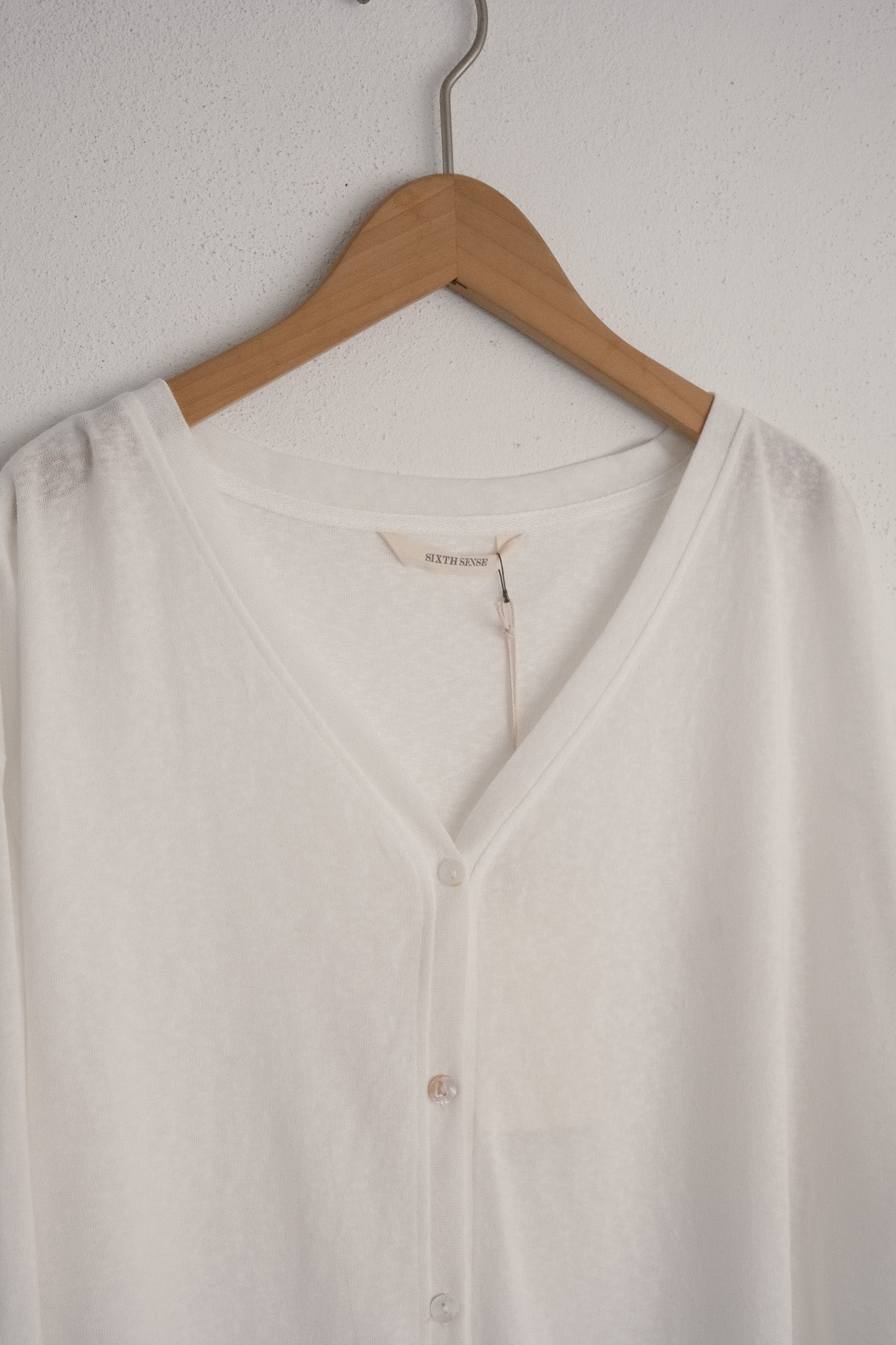 Lightly draped and easy to wear, this cardigan brings a soft layer of comfort with its sheer touch and relaxed silhouette. The simple button-down front and long sleeves make it a piece that slips on naturally, whether for quiet mornings at home or as a light cover through shifting days.
