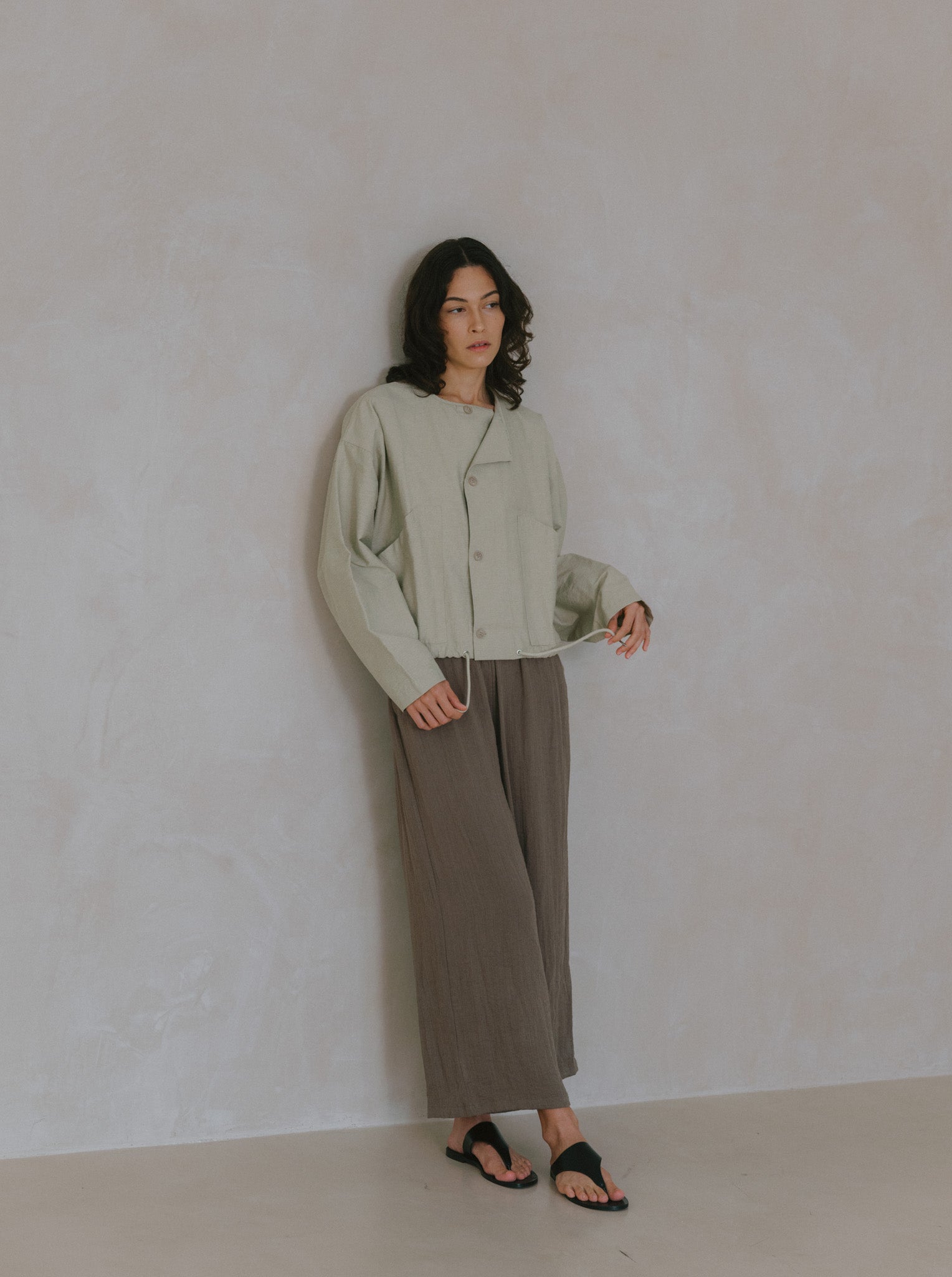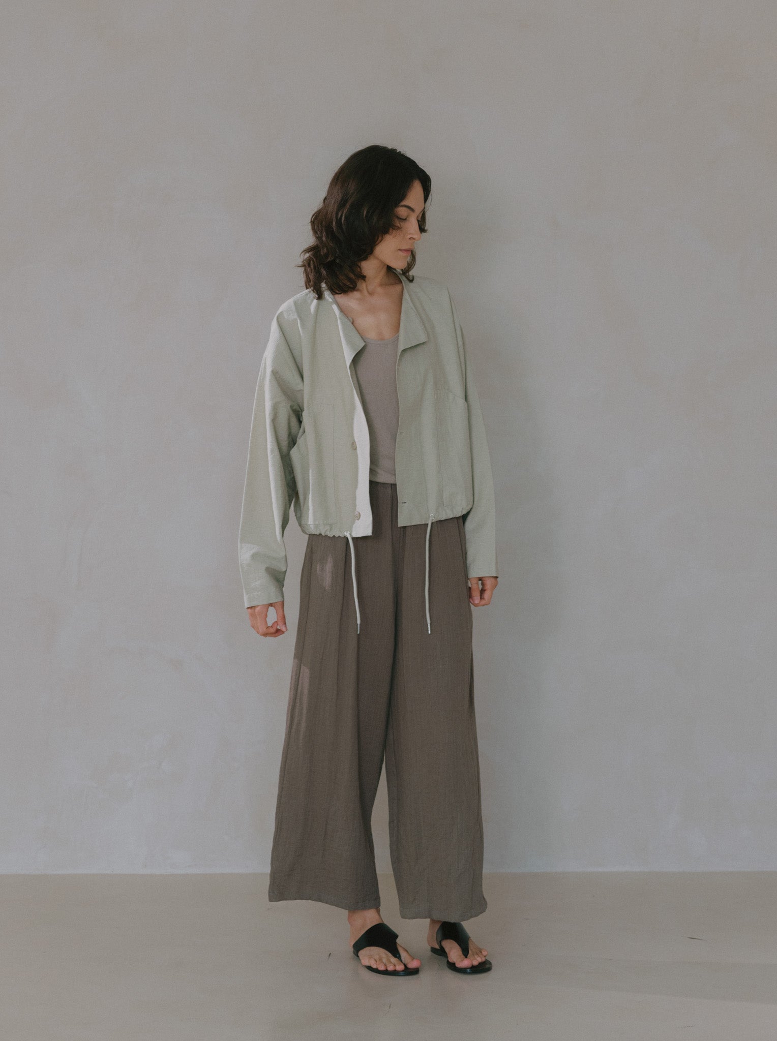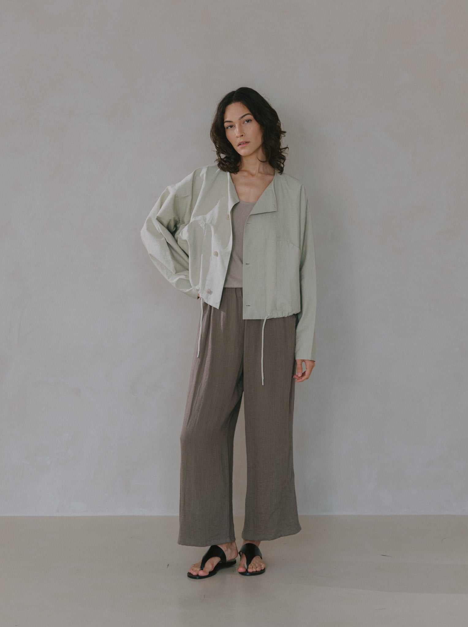 Experience comfort with effortless elegance in our Elasticated Flare Trousers. Crafted from a luxurious blend of rayon and linen, these trousers offer a relaxed silhouette with an elasticated waistband, ensuring comfort and ease. The gentle flare adds fluidity and grace to your everyday style.