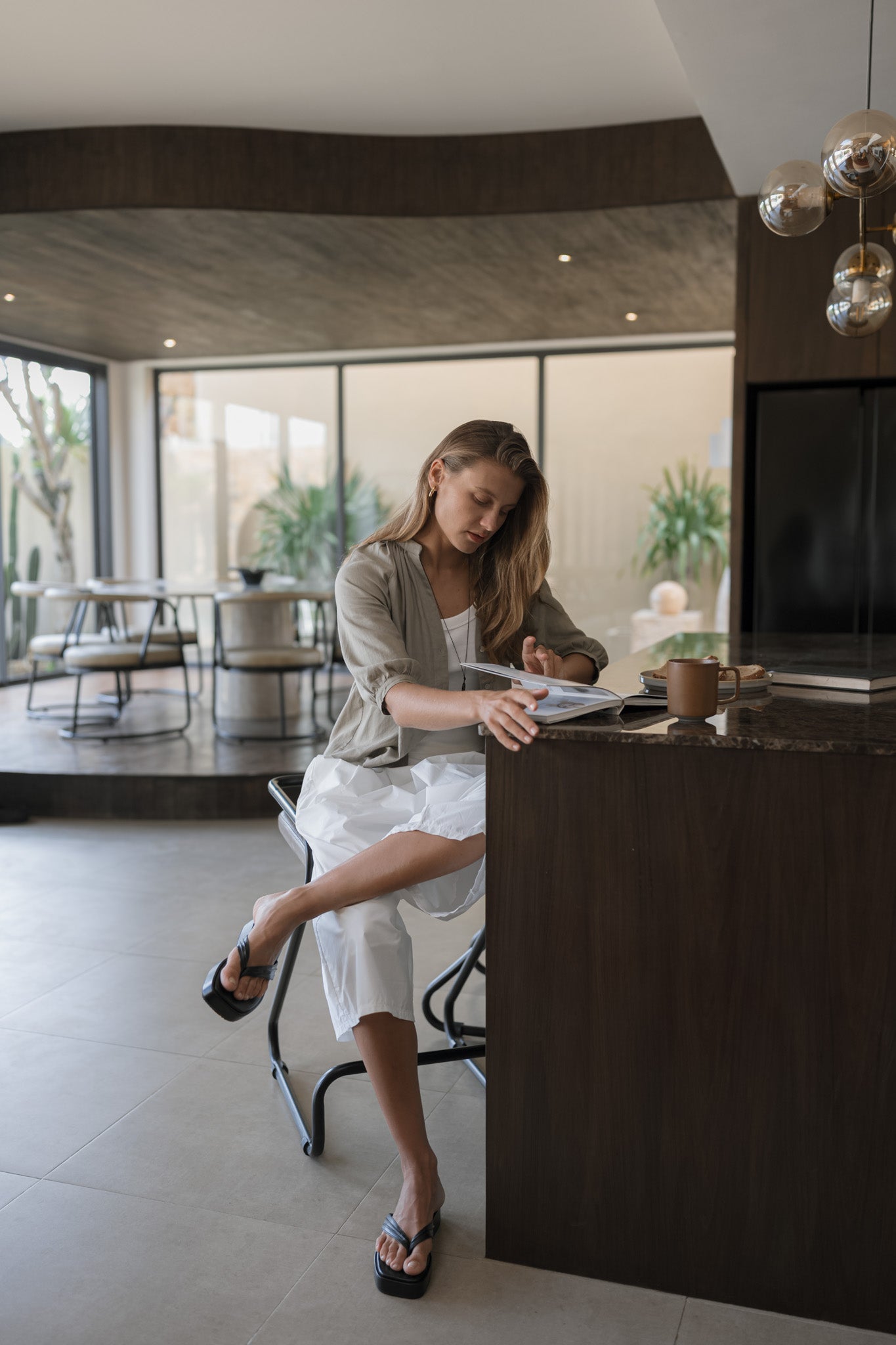 A sculptural, knee-length trouser designed with folded panels that wrap gently around the body. The crisp cotton fabric gives it a structured yet airy feel, while the mid-calf length keeps it easy and relaxed for everyday wear