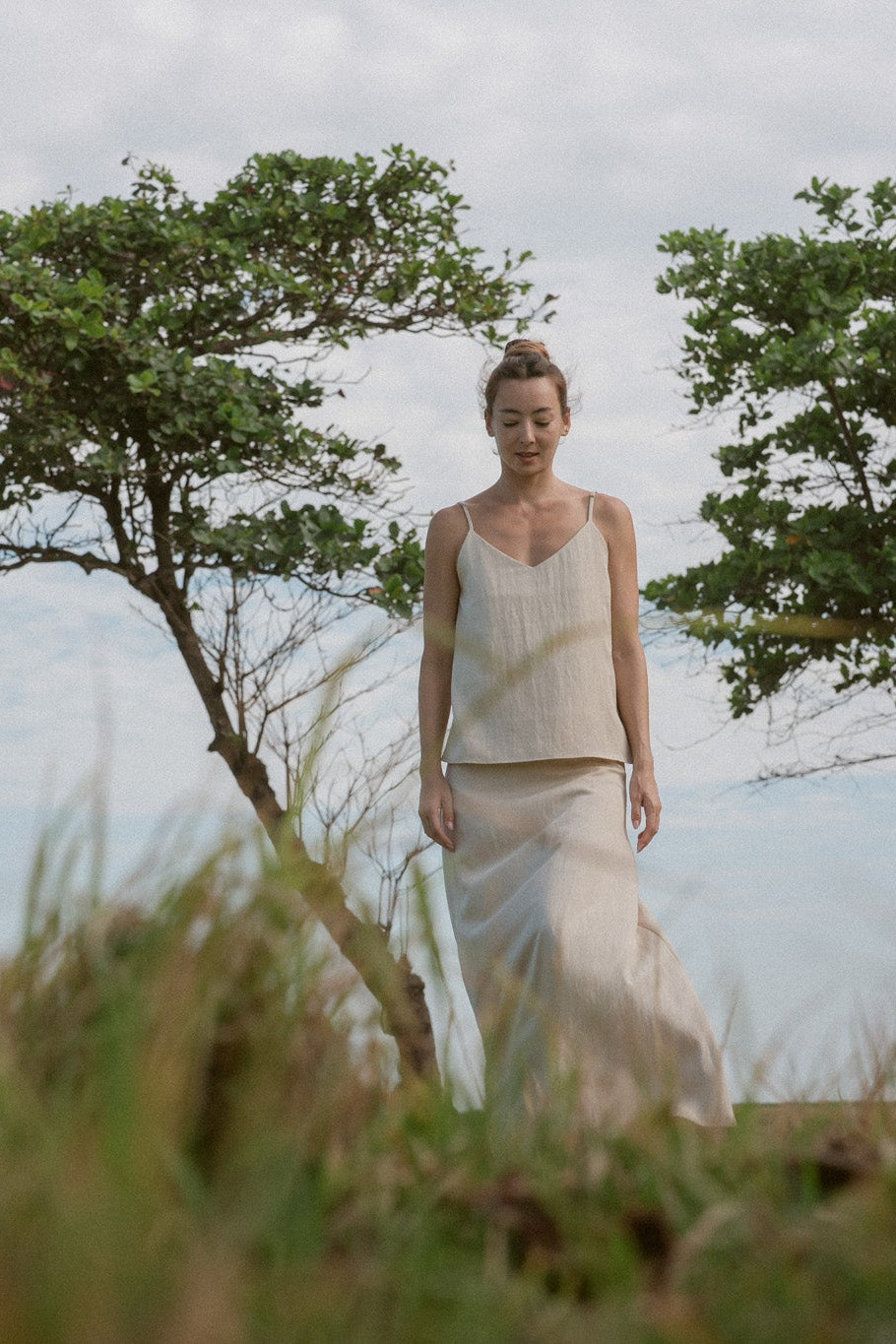 Soft lines that echo the rhythm of the shore - the Mares Long Skirt flows with quiet grace. Cut in a long, fluid silhouette that skims the body and drifts gently as you move, it embodies ease and understated femininity.