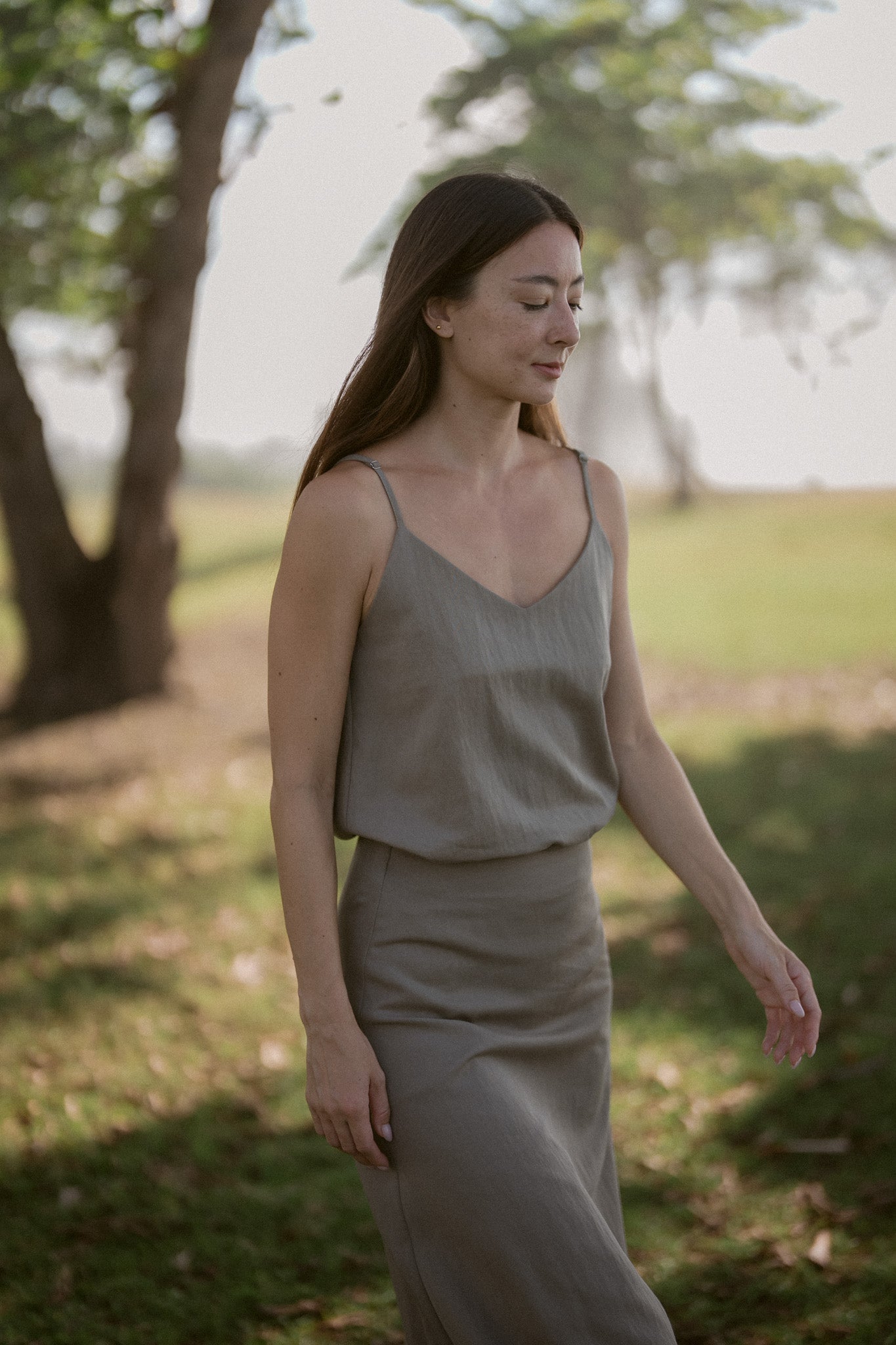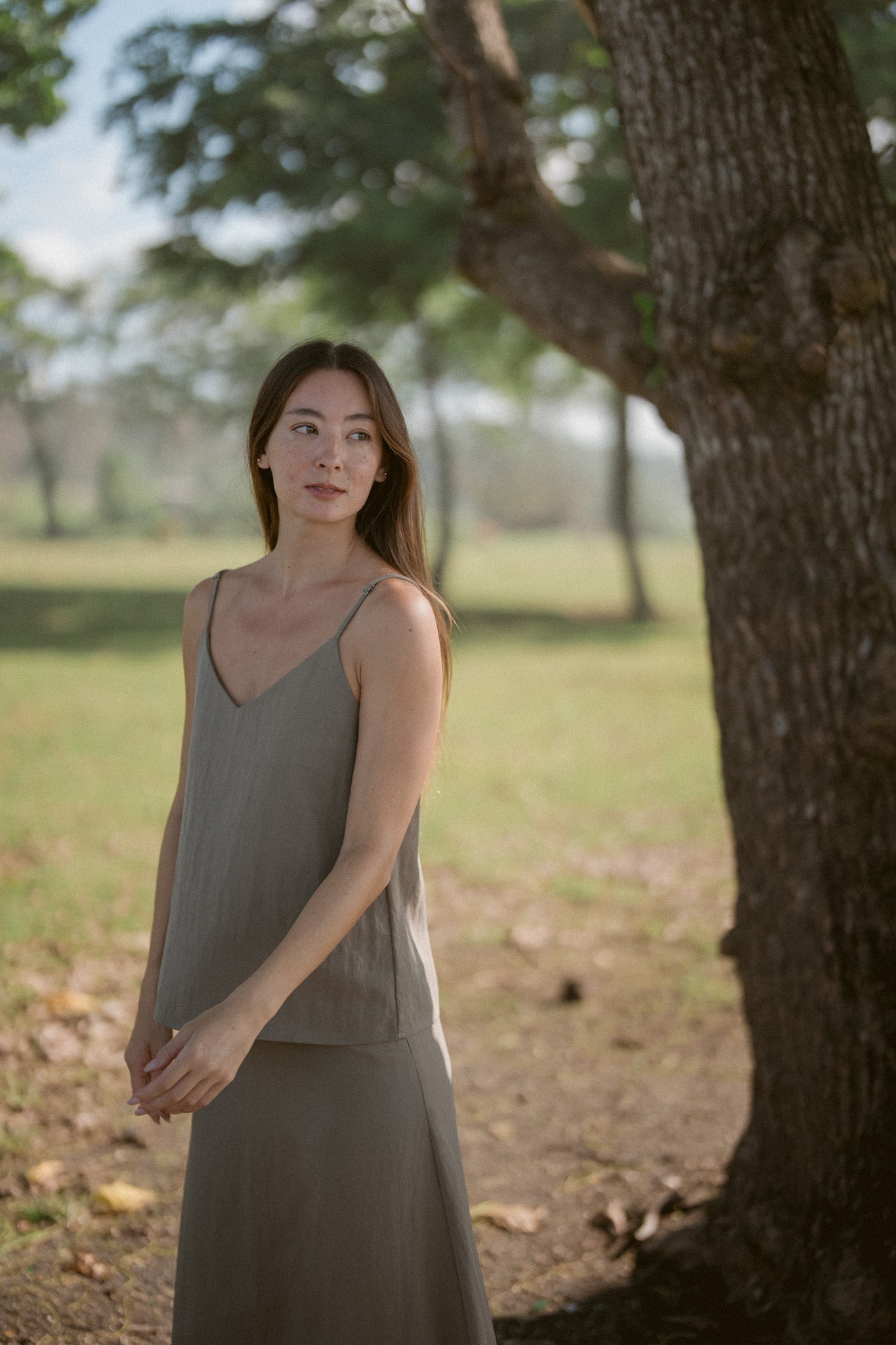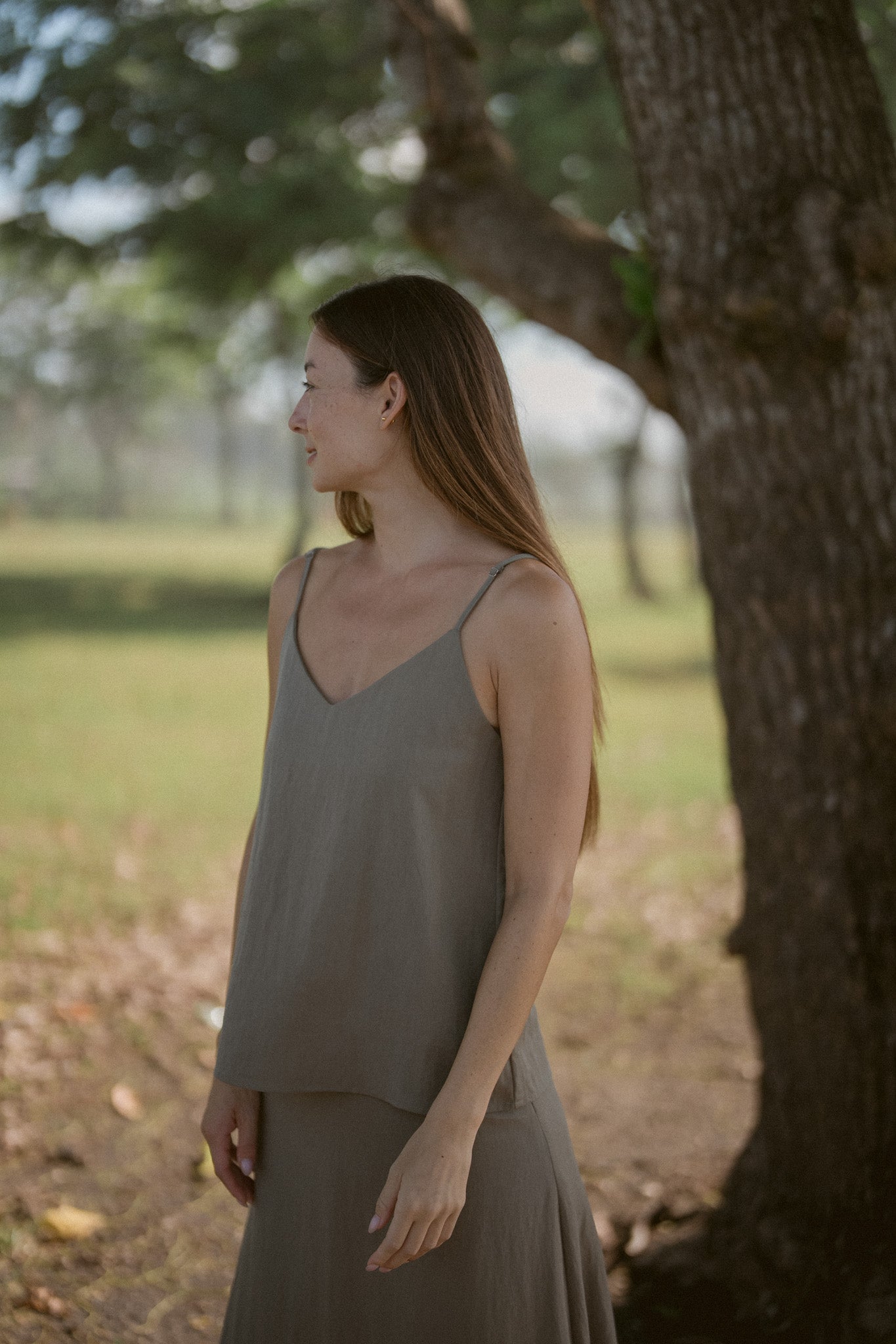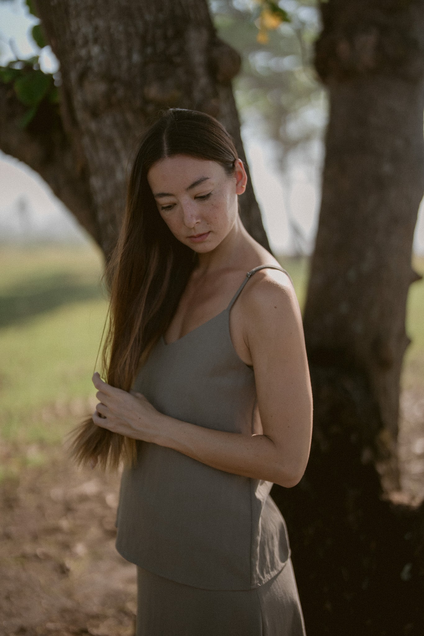 Soft and fluid, the Nami Strap Top captures the quiet ease of a summer morning. Designed with slender straps and a gentle drape, it moves with lightness - like a ripple across still water.